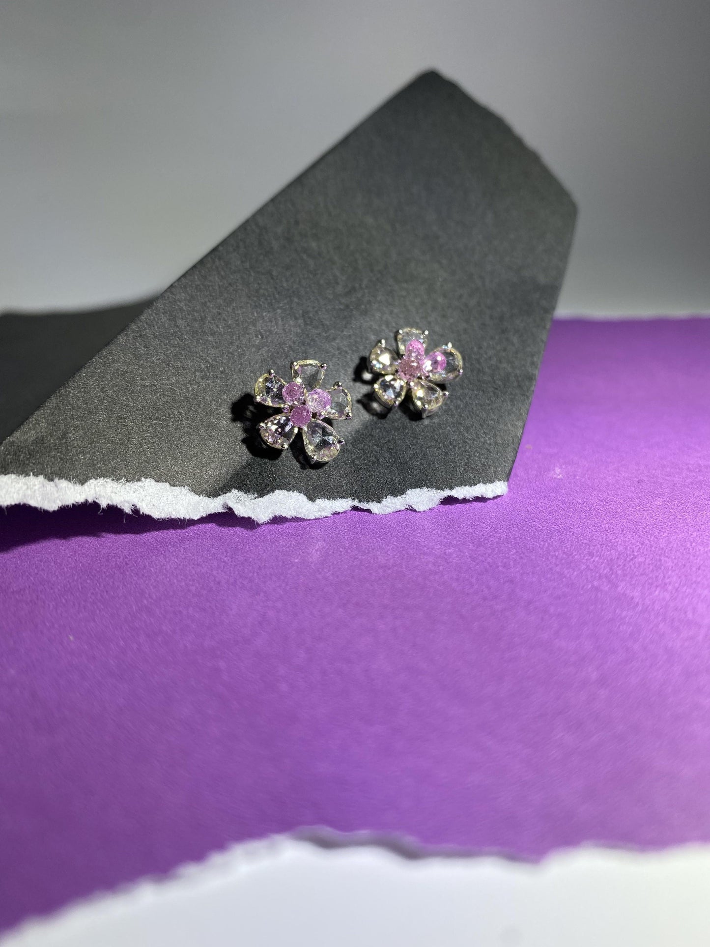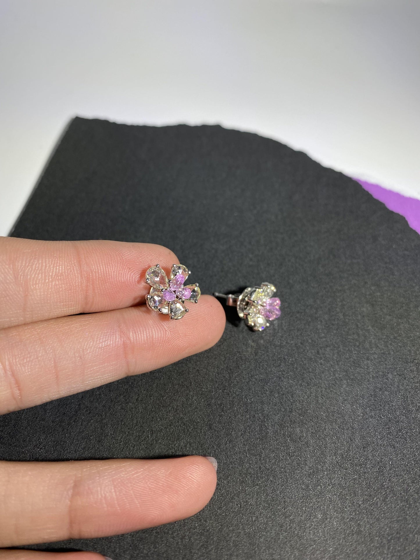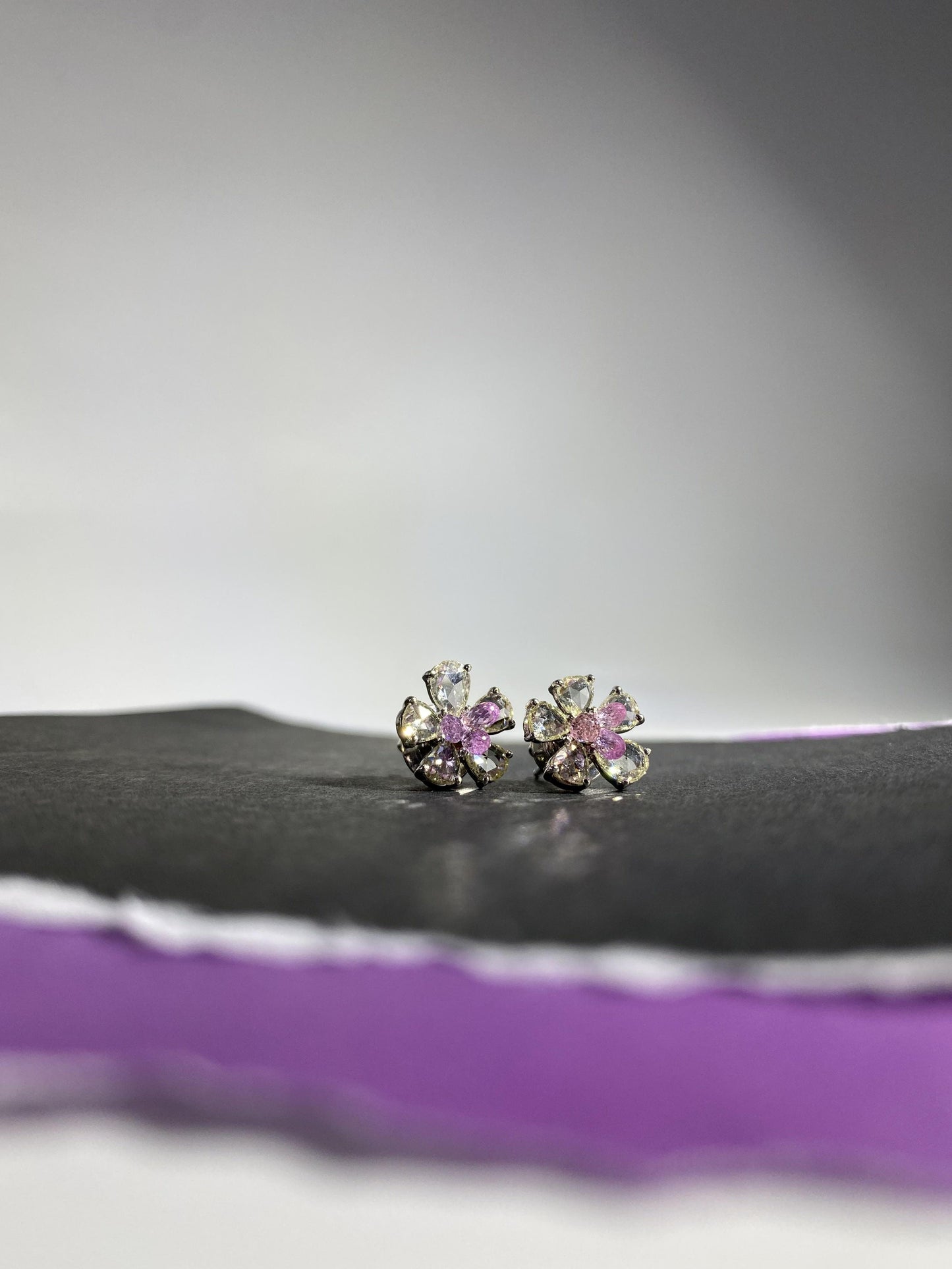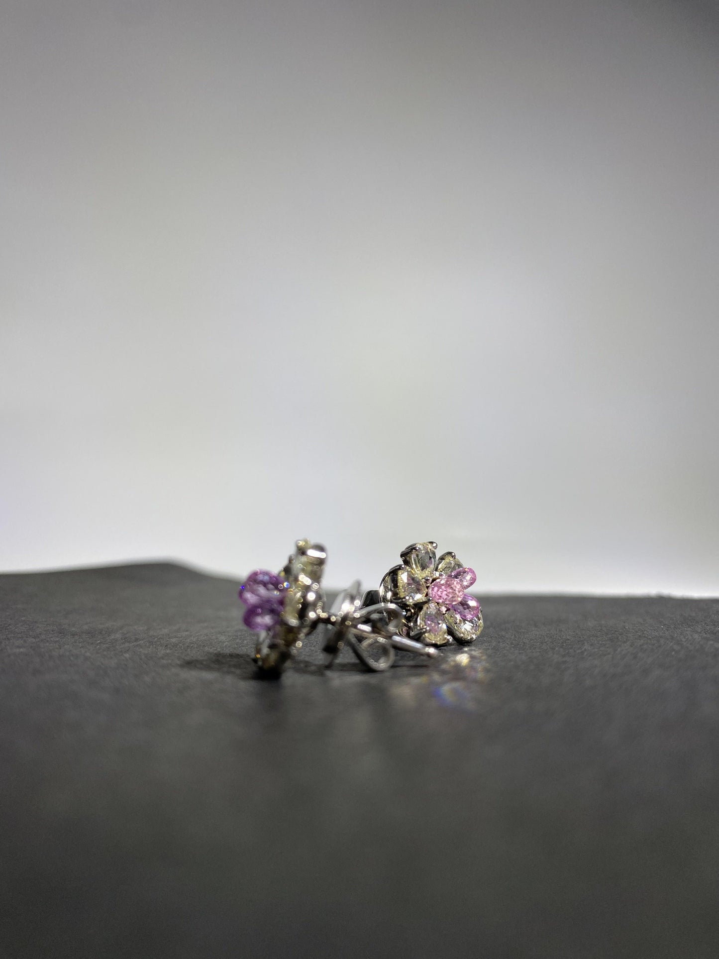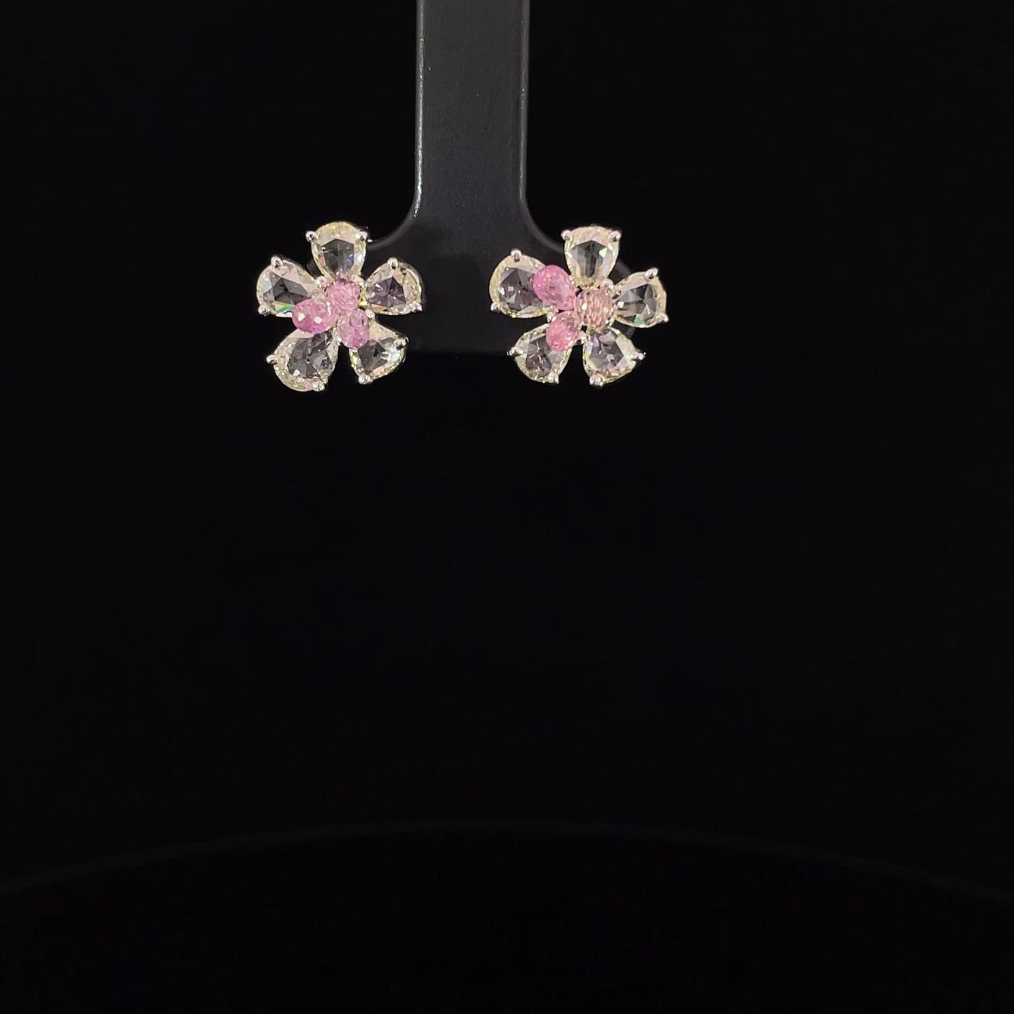 2 Carat Pink Tourmaline 2.38 Carat Rose Cut Diamond Studs