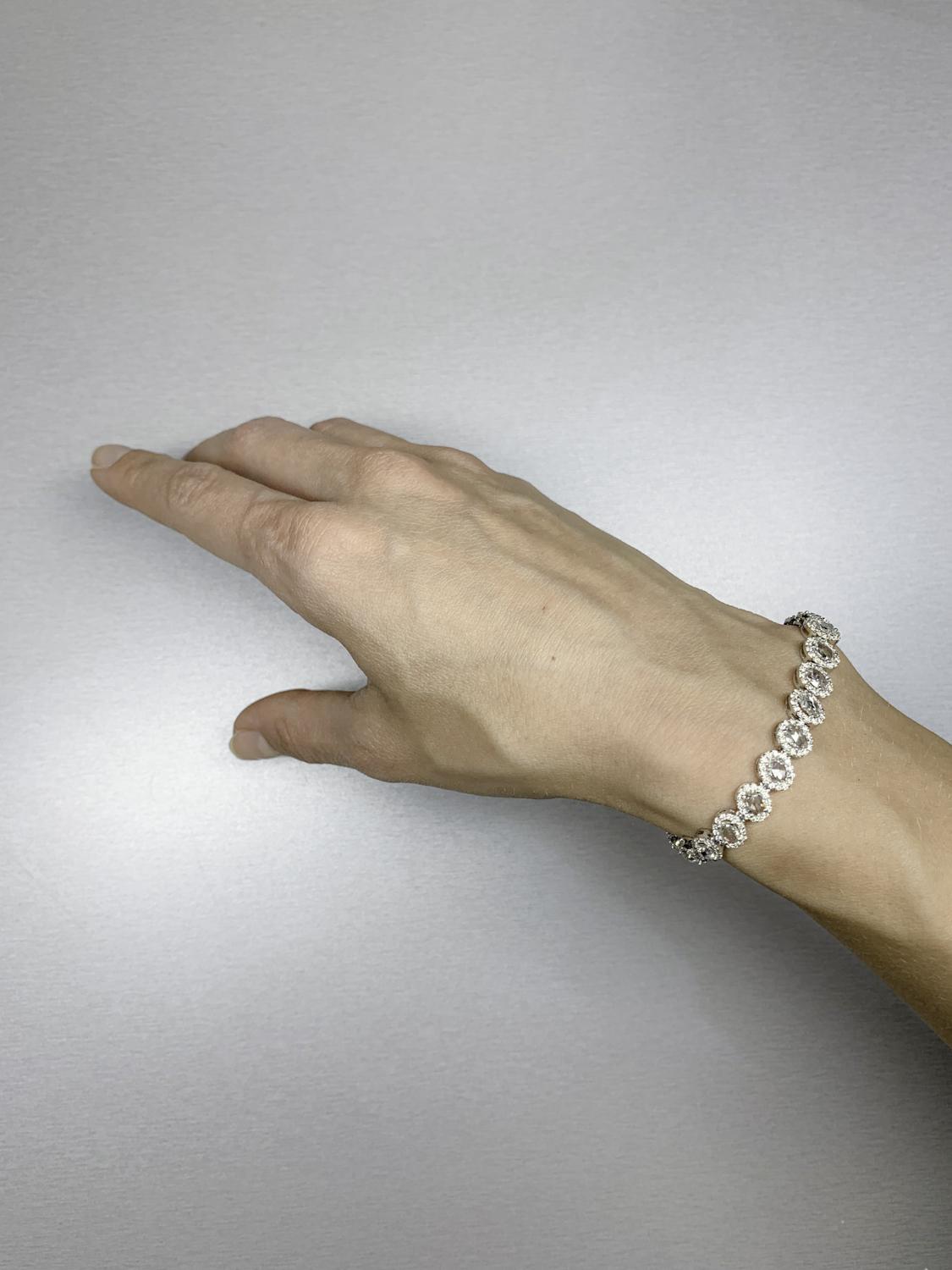 6.50 Carat Rose Cut and Round Brilliant Cut Diamond Tennis Halo Bracelet