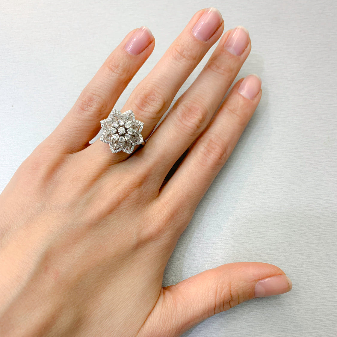 The "Lily Ring" - Round Brilliant Cut Diamonds & Rose Cut Diamonds