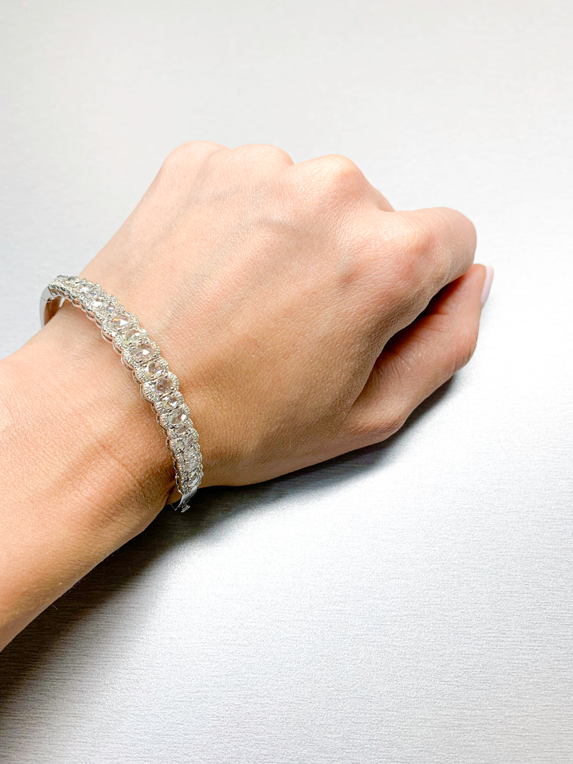 18K White Gold Tennis Bracelet with Rose Cut Diamonds (2.37 Carats)