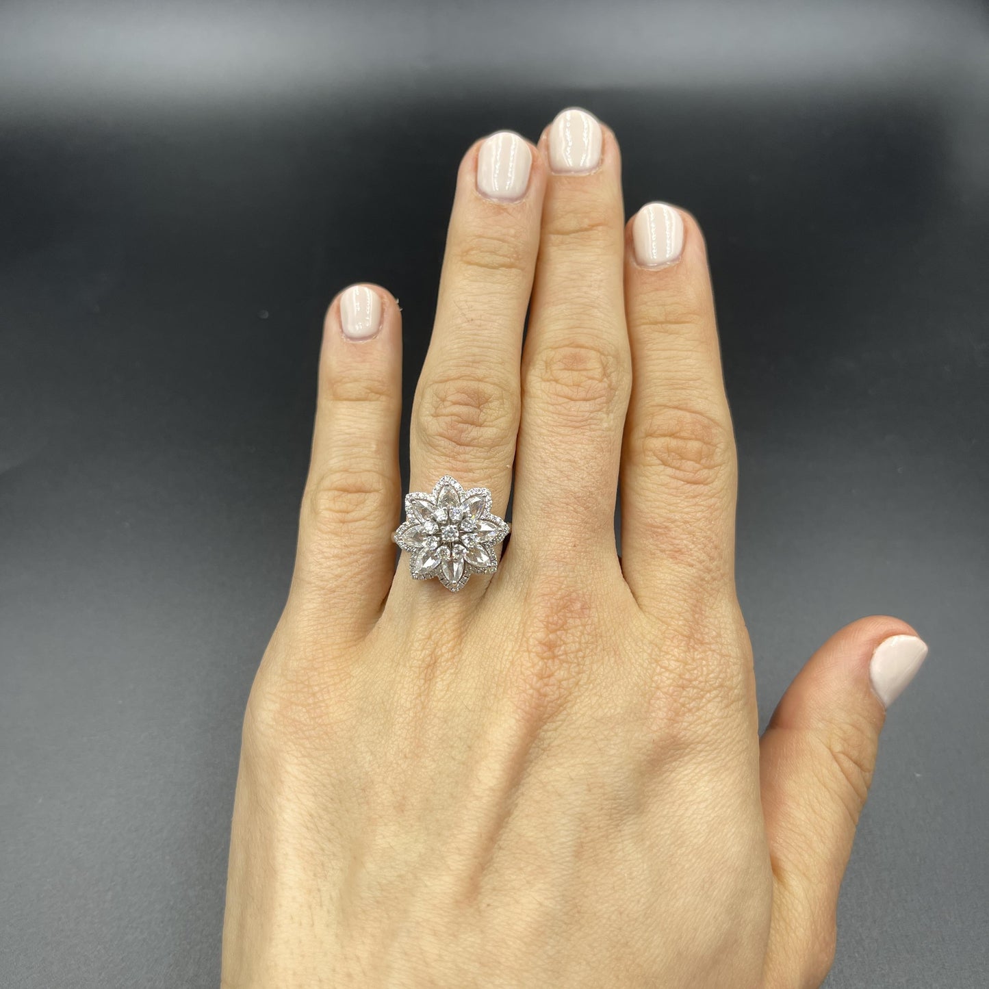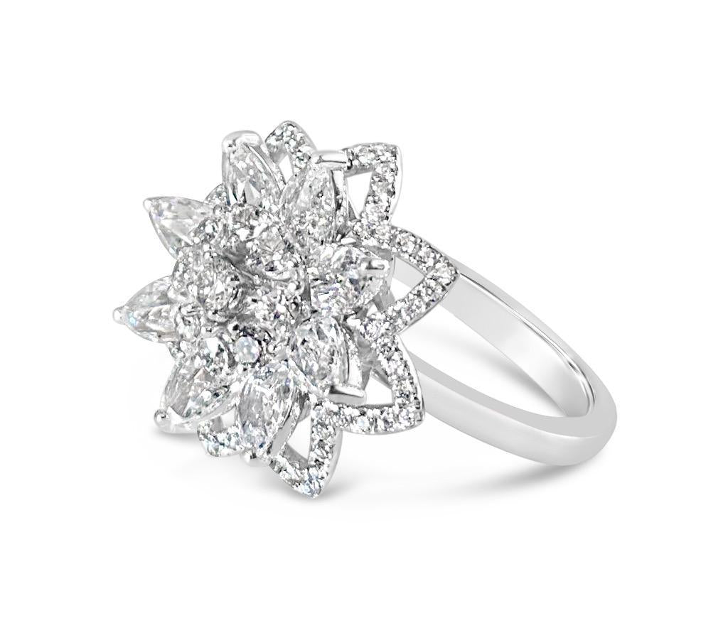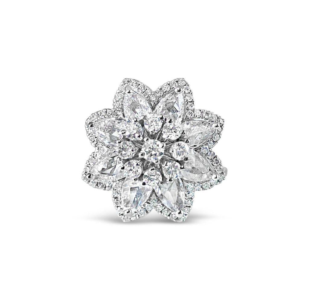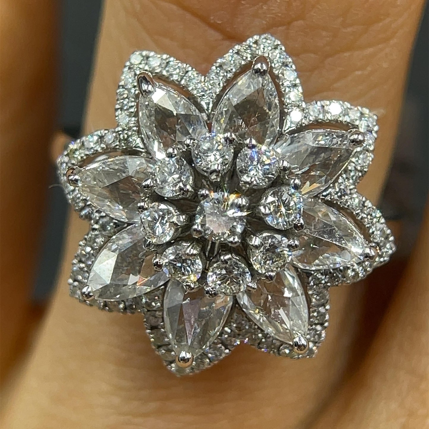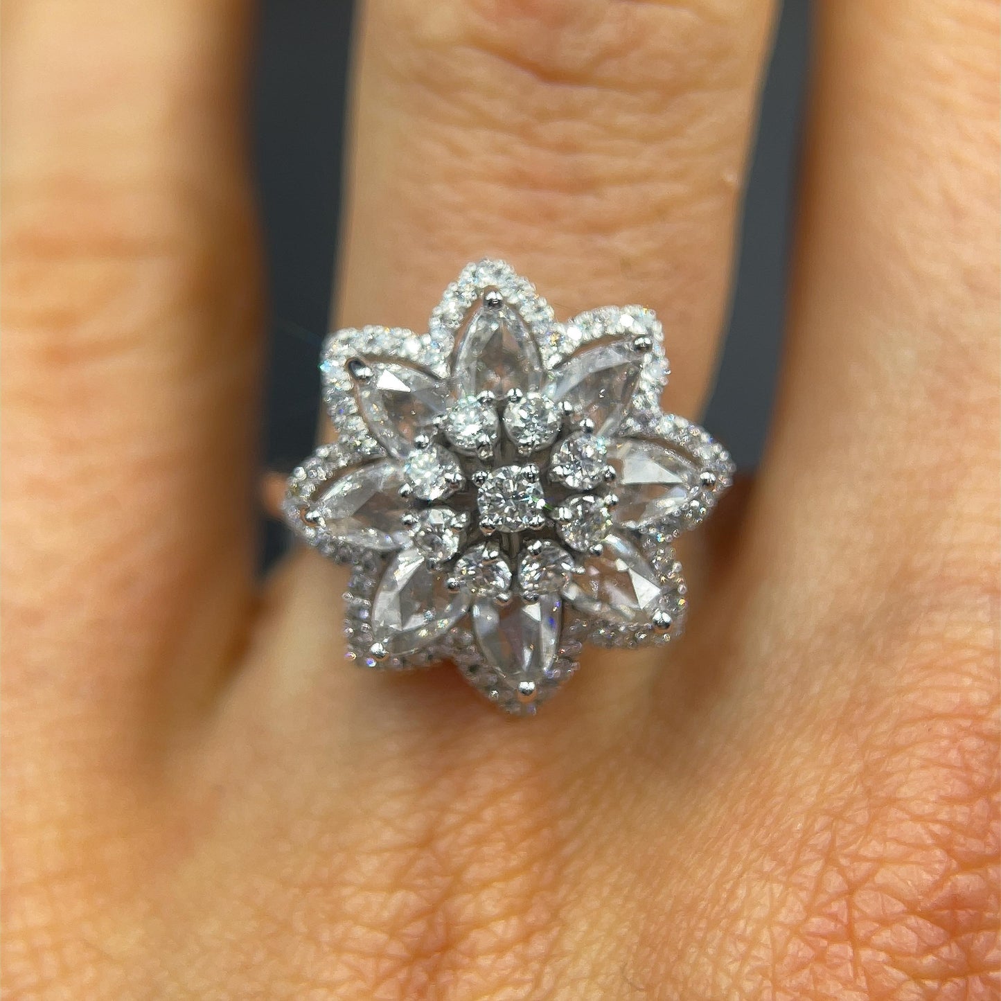 1.45 Carat Rose cut 0.43 Carat Round Diamond Lilotus Ring 18K Gold, Size 6.25