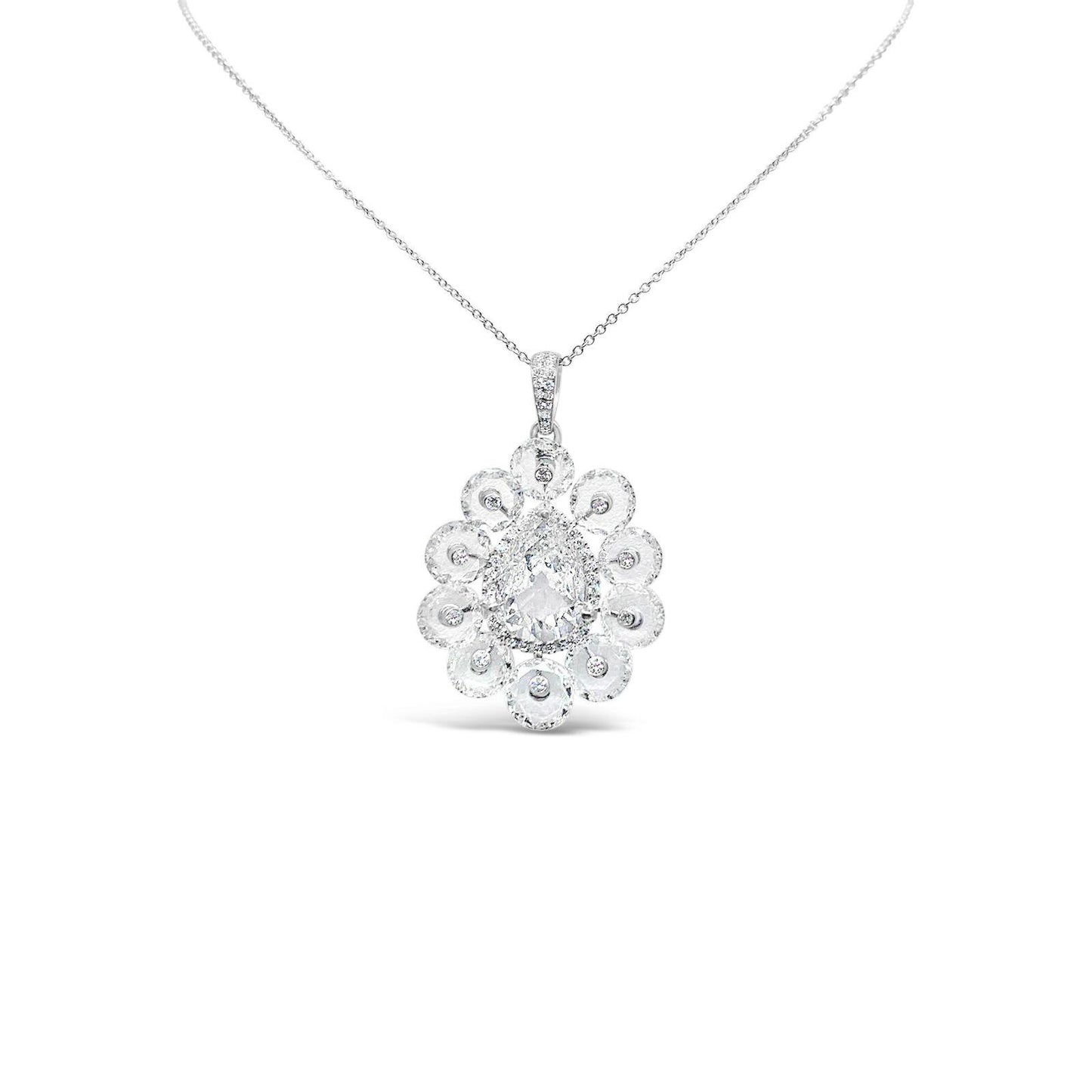 4.50 Carat Rose Cut and 2.40 Carat Pear Shaped Diamond 18K Gold Pendant