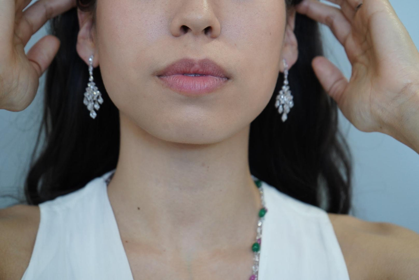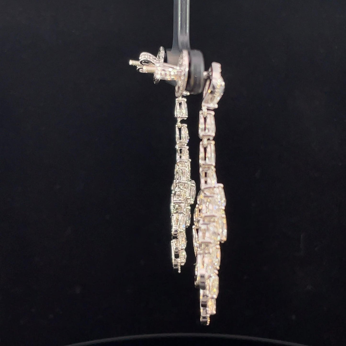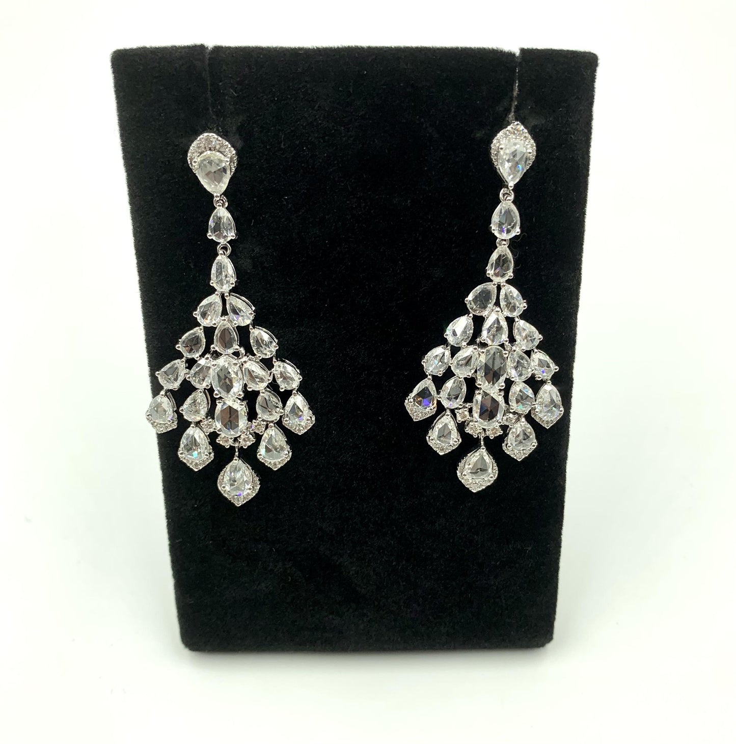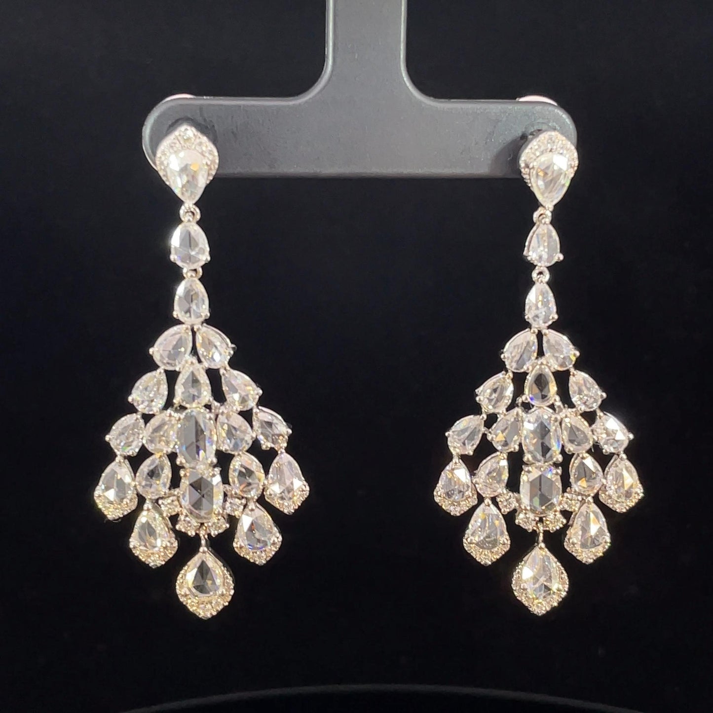 6.90 Carat Pear Rose Cut Diamond Chandelier Drop 18K White Gold Earrings